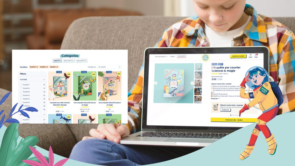 Refonte site ecommerce Shopify et création d’un funnel d’abonnement pour ce projet d’enquête pour enfants 100% made in France. Cogiter en s’amusant !