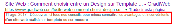 Si vous utilisez le CMS WordPress, vous pouvez installer ce module YOAST SEO qui permet, sans aucune intervention technique d’un développeur, de configurer l’ensemble de vos “META Description”. https://fr.wordpress.org/plugins/wordpress-seo/